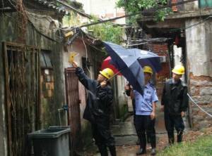 Typhon en CHINE:le gouvernement à Canton rend visite aux citoyens qui habitent dans les quartiers dangereux.