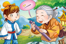 Agenouillée au bord de la rivière,une vieille femme frottait une barre de fer sur une pierre, Li Bai intrigué par un tel manière lui demanda: