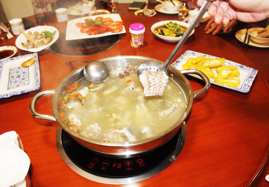 Généralement, les Chinois le cuisine sur la table ronde, qui peut tourner tout en cuisant. Sa viande, sa peau, sa bile, son foie, ses intestins, son sang, etc peuvent être mangés.
