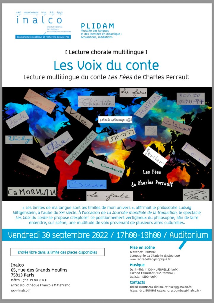 Les 30 septembre et 1er octobre, il y a une activité de lecture de conte de fées sur notre traduction.